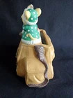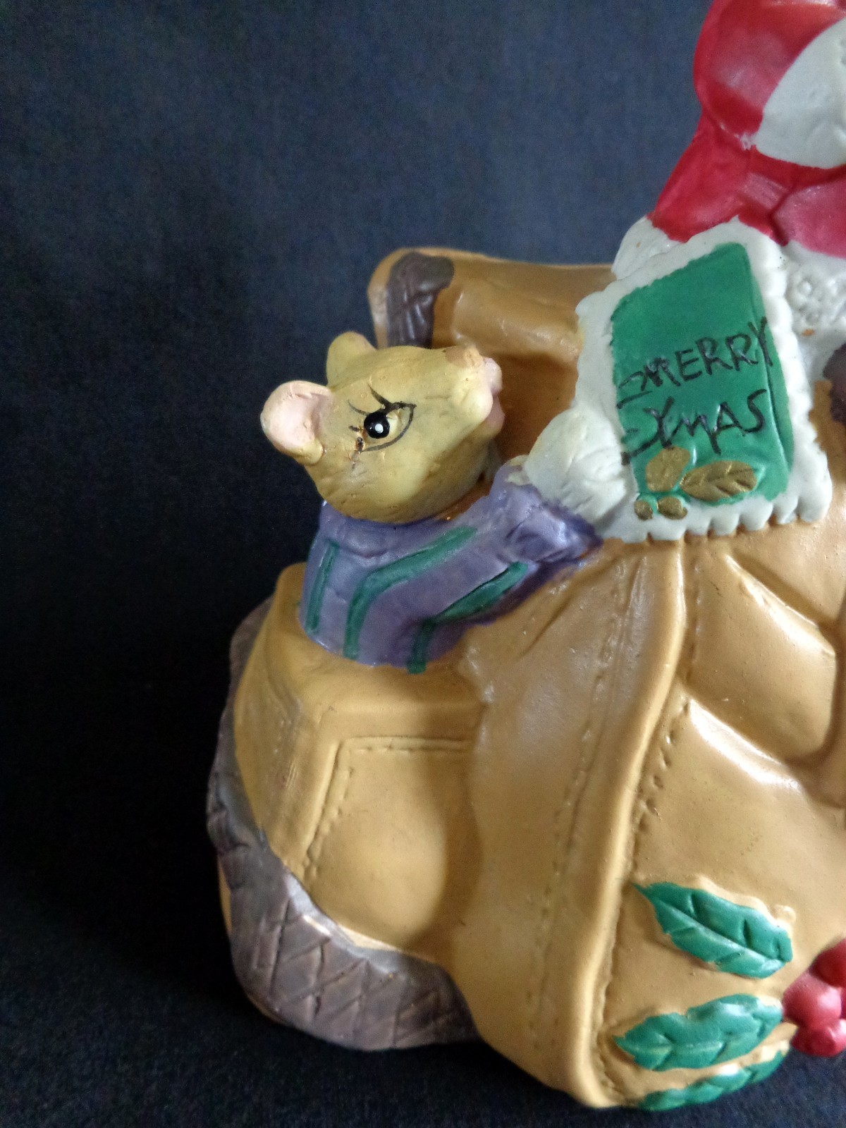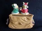 Christmas Card Holder Mice on Mailbag Holds about 3 Greeting Cards Slot measures 5" x 0.5" Condition: No chips or cracks. Has light scuff marks and scratches. Fly in and visit us at Sassy Duck Finds!
