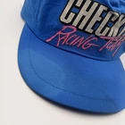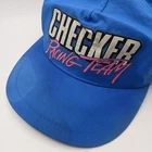 Elevate your headwear collection with the Vintage Checker Racing Team Adjustable Hat. A nod to classic racing themes, this baseball cap features a solid blue colorway that's as bold as it is timeless. Crafted from durable nylon, the hat is designed to be lightweight and adjustable, ensuring a comfortable fit for all-day wear. The cap's versatile design makes it suited for various occasions, from casual outings to workwear and even travel. Unisex in nature, it's a great accessory for anyone looking to add a touch of vintage flair to their ensemble. Whether you're under the hood or out on the town, this cap's iconic 'Checker' character adds a playful spin to your look. ***PLEASE NOTE, the brim of the hat has some discoloration and staining. Please see all pictures for better idea of condition.***