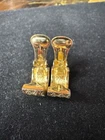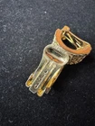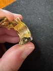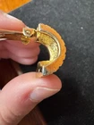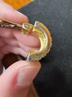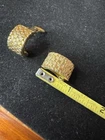 Add a touch of vintage elegance to your look with these Christian Dior gold tone woven textured clip on earrings. The earrings feature a unique design that is sure to make a statement. The brand name is synonymous with luxury and sophistication, making these earrings a perfect addition to your jewelry collection. These are being sold as is and as marked. The christian dior markings can be seen in photos. There is some wear/ damage to the earrings. One corner/ side of the earring is losing its outer layer as shown in photos. On the bottom of that earring, has the same issue going on where the outer layer is flaking off as shown in photos. It’s almost like a very small chunk was taken out. Please see photos for condition. These are used and have wear.