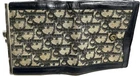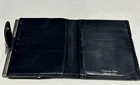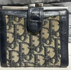 This is a vintage CHRISTIAN DIOR Trotter Blue Monogrammed Canvas and Leather bifold wallet made between 1970-1979. It features blue tapestry canvas with blue leather details and light shades of brown. The interior has 12 card slots, a pocket on each side, a bill pocket, and a built-in kiss hinge lock for the coin compartment. The interior is lined in blue leather and is stamped on the lower right side “Christian Dior Paris-New York. The wallet does show signs of wear on the metal and interior coin and bill section. I have circled it in the photo. The wallet is still usable. If you would like more pictures, feel free to contact me. I have described it the best that I could. This comes from a smoke free and pet free home. Thank you for looking.