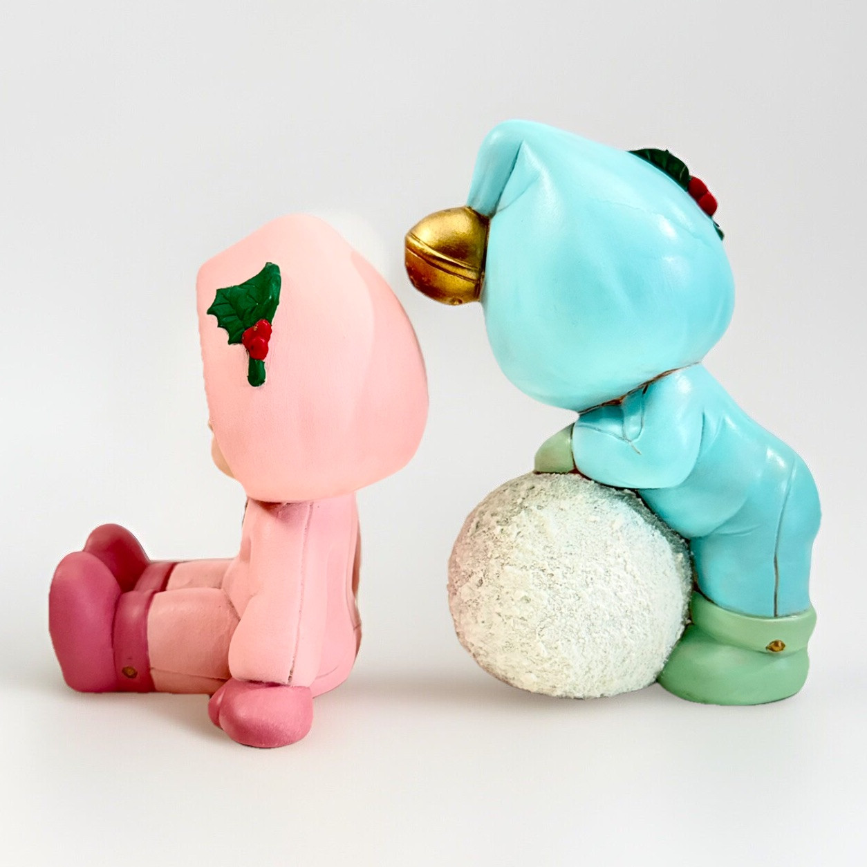 Vintage Figurines Snowbaby Bisque Holiday Decoration Set Of 2 Mid Century ❤️Measurement: Height: 7 in.(Blue) 5.5 in. (Pink) Weight: 1.13 lbs. ❤️Beautiful Excellent condition. Free from chips, cracks or scratch. Please review all attached photos for more details and feel free to reach out for any questions. ❤️Free shipping with bundle of care and ship right away🚚🚚 ❤️Thank you🙏