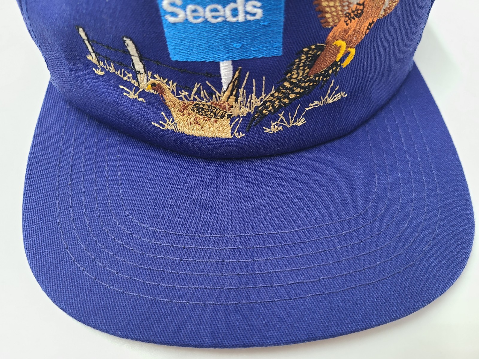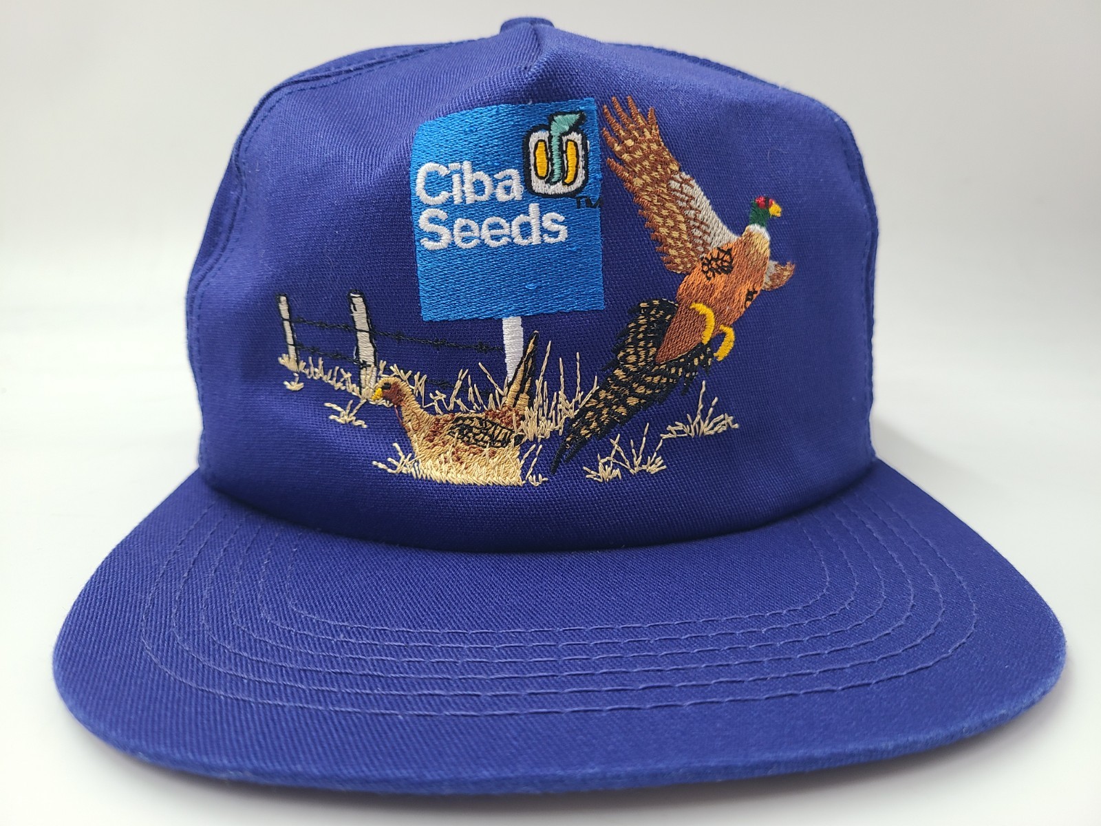 Has a tear near the back as seen in photos. Vintage Ciba Seeds Pheasant K-Products Snapback Hat Cap Hunt Farm Men Women Blue. EACH ADDITIONAL HAT PURCHASED IS ONLY $1 ADDED SHIPPING!