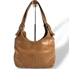 This vintage Coach tote is a timeless beauty! The rich brown leather has a gorgeous patina that only gets better with age. Despite minor signs of use, the bag remains sturdy and spacious - perfect for daily essentials. The 13" width fits comfortably on the shoulder, and the craftsmanship shines through. A fantastic find for lovers of authentic vintage leather goods that tell a story.
