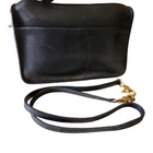 Here is a vintage Coach black leather Companion bag purse style number #5625. This classic purse was made in New York City in the 1980s. New York was the original place where Coach bags were made, then the United States, and then worldwide. This purse has two slip pockets on the front. It closes with a thick brass zipper using a leather pull. Inside has an open black leather pocket with the creed. The shoulder strap has lobster clips and is detachable, so the purse can be used as clutch. This purse is in very good condition. A few light scratches on the front of the purse. I took very closes picutres of this purse, on the back sides show where the purse was as a clutch. Measurements are 10 1/2"L x 7 1/2"W. The strap is 40 inches long. Fabulous thick leather Coach first initially on their purses. Measurements are 10 inches long and 7 1/2 inches wide and 21/2 inches deep.