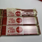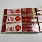 Vintage Coca Cola promotional pencils in the original half gross box. All pencils are present and still sealed in their original bundles. One of the cellophane wrappers is ripped, but the pencils inside are unused. These are authentic mid century Coca Cola pencils. The erasers are likely hardened from age. The box shows light wear from storage. Graphics are clear and bright. A great collectible for Coke advertising fans or vintage office supply collectors. ⸻ Condition Pencils are unused in original packaging. One bundle has torn cellophane. Erasers are likely hardened from age. Box has mild wear, is missing an inside flap, and some edge creasing.