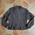 Vintage Coldwater Creek Boho Paisley Button Front Tapestry Blazer Womens Size M In fair-good overall condition. No tears/holes or stains. Brand tags says fits a women’s size medium. Made of a tapestry material with red, orange, dark green, yellow, and blue boho paisley design. Some distressing to threads throughout jacket as pictured. Price reflects this.