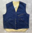 Brand: Come on Strong Colour: Blue Theme: Classic Vintage: Yes Color: Blue Country/Region of Manufacture: United States Fabric Type: Denim Department: Mens Occasion: Casual Style: Basic Jacket Outer Shell Material: Cotton Insulation Material: Polyester Closure: Snap Size Type: Regular Fit: Regular Lining Material: Polyester Pattern: Solid Season: Spring, Summer, Winter, Fall Jacket/Coat Length: Short Features: Lined, Pockets, All Seasons, Zipped Pockets Size: L Performance/Activity: Walking Type: Vest