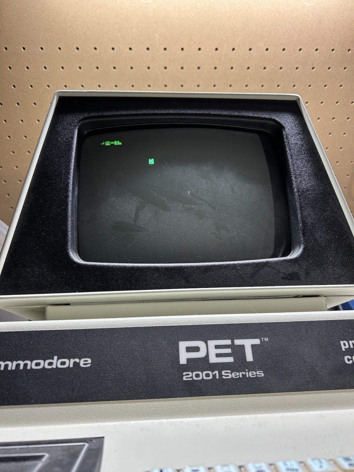 This is a late-chiclet keyboard Commodore PET 2001-8 model from about 1979. It’s in good shape cosmetically and powers on, but the screen is garbled. I’ve tried to figure out what caused this but haven’t been able to. As such, it’s being sold in not-working condition.