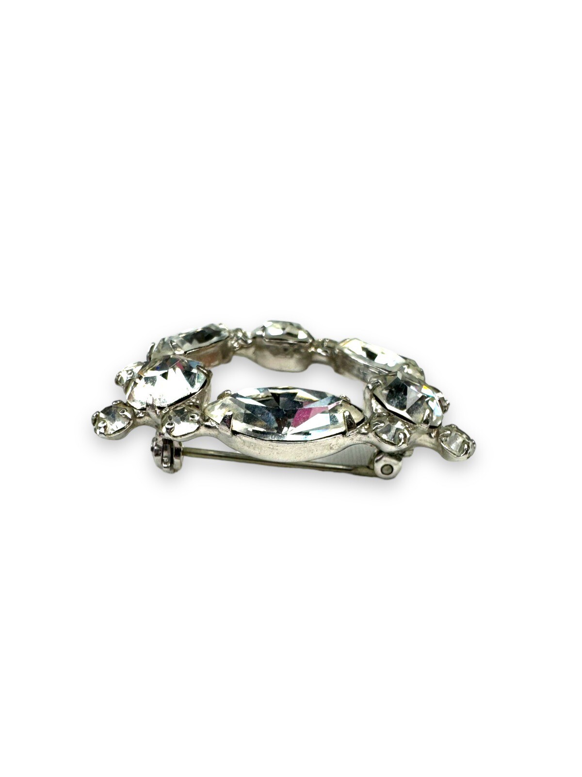 This vintage brooch is a stunning piece of jewelry that measures 1.5" x 1.5". It features a prong setting style with a beautiful sparkling crystals. This brooch is a great addition to any jewelry collection and can be worn with any outfit. It is unsigned but its beauty speaks for itself. The silver color of this brooch makes it suitable for any occasion and the crystals add a touch of elegance. Whether you're looking for a vintage or antique piece of jewelry, this brooch fits the bill. In great ready-to-wear condition with no missing or chipped crystals. Sold as-is. Any additional cleaning or polishing is at the discretion of the buyer. Stands and displays are not for sale, and are used for photographing purposes. The packaging of each order is recorded and photos are also taken during the process. This is to ensure that both us and you, the buyer, are covered should anything happen to the package during the shipping process or during delivery. We attempt to describe each item to the best of our knowledge, however, please review all photos and ask questions before bidding or purchasing. Be sure to check out our other listings. Please read our business policy. It is part of the description, and contains important information. Business Policy Condition: Please remember that condition is subjective. Also, be aware that colors in person may vary slightly from what you see on your screen. Communication: We will respond to messages in a timely manner. However, if received on weekends or after 8pm EST on weekdays there may be a delay. Please be patient we will respond to you as quickly as possible. Tax : Internet sales tax will be applied by eBay depending on where you live, and we can not adjust that cost. Invoices : If receiving an invoice, please read the invoice fully. There may be applied sales tax depending on where you live, and should not be misconstrued as shipping. Unfortunately, because we use eBay's Global shipping program we can not send edited invoices to international buyers to offer discounts or free shipping. The invoice you receive as a buyer outside the United States will be provided to you buy eBay, and is the total cost you will need to pay to receive your item. Payment : Payment is expected within 4 days of winning an auction or purchasing an item or items. Shipping : Combined shipping is available. Free shipping on orders over $75. Please allow three business days for handling following completion of payment. International shipping available through eBay international shipping only. The free shipping offer only covers shipping within the United States. It does not cover international shipping, customs fees, duties or tax. Those fees are the responsibility of the buyer. For a ll orders $100 and over, the package will insured for the full price of the contents. On orders totaling $500, or more we may add signature confirmation. Handling : Please allow up to 3 days for handling. That means from the moment you pay there can be up to 72 hours before the Post Office scans your package as received. However, there may be times the Post Office is in possession of your package that same day or the following. Please be patient as we are a very small business with only two employees. We attempt to have packages out as soon as possible, but occasionally may need to utilize all 72 hours. Thank you for your understanding. Returns : We accept returns on most items as long as it is in the same condition shown in the photos and in its original packaging. We may request photos before accepting returns. Sealed packs and boxes of trading cards : Packs are sealed! We have no way of being able to see the condition of the cards inside. We store and ship carefully, however, some are 20 years old or older, and we have no way of knowing how they were handled or stored before we acquired them. There may be cards inside that are in less than ideal condition. Please be aware of this before bidding or purchasing as we will not issue refunds, partial or whole, for packs or boxes that have been opened nor we will accept returns for packs or boxes that have been opened.