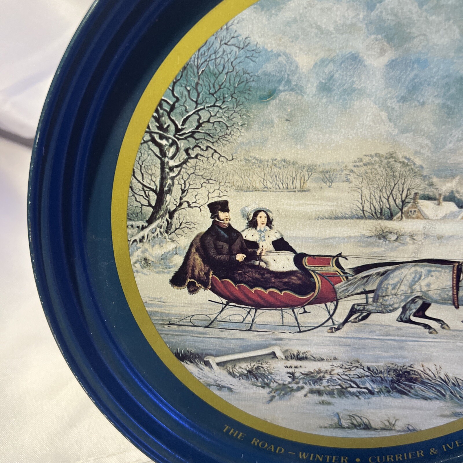 This vintage Currier & Ives tin features a beautiful winter horse drawn sleigh, perfect for your Christmas greetings. The intricate design is sure to impress and add a touch of nostalgia to your collection. Made for collectors of vintage greeting cards, this piece is a must-have for anyone who appreciates the art of hand-crafted cards. The tin is perfect for storing your collection or for use as a decorative piece. Get your hands on this unique piece today and add a touch of history to your Christmas card collection.
