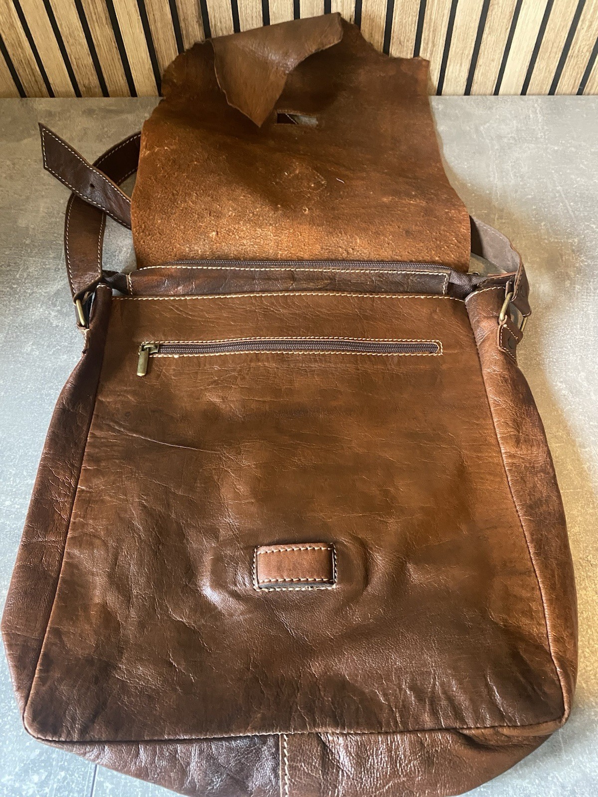 Vintage Distressed Leather Crossbody Bag large Beautiful Bag With zip pocket to the front and back and main Same or next day dispatch with tracked delivery