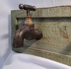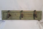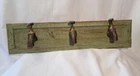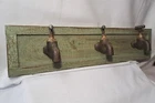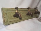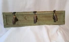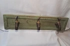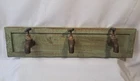 Shabby Chic Wood Wall Hanging Vintage Faucet Coat Rack Distressed Measurements are approx: just under 18.75" across x 4.5" tall x .75" deep I believe the faucets are cast Iron but I can't say that for sure The wood is a distressed green finish I consider to be in very good preowned condition Please view all photos zooming in on them as they are part of the description for you to judge condition Will ship either USPS, Fedex or UPS depending on the location of where buyer lives. IMPORTANT - if ships via UPS or Fedex they require a home delivery address as they cannot deliver to post office boxes - NO POST OFFICE BOX