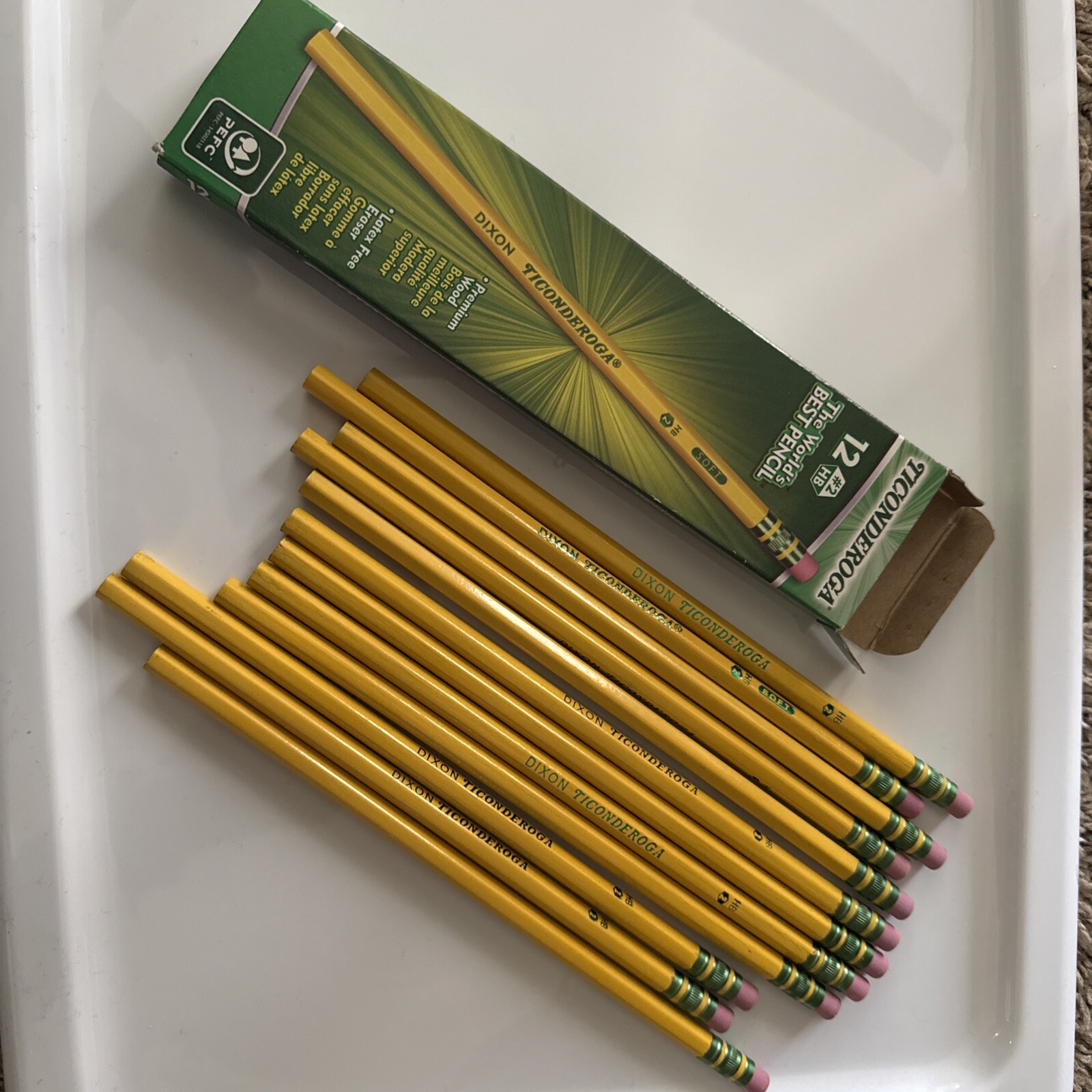 The product is a vintage set of Dixon Ticonderoga pencils, specifically the 13882 No. 2 HB model, made in Mexico. 12 pencils per pack.