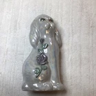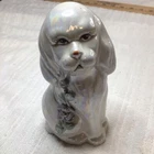 The vintage dog figurine is made of porcelain and features a beautiful design with flowers. This collectible item is a figurine of a dog and would make a lovely addition to any collection. The intricate details and delicate craftsmanship of the figurine add charm and elegance to the overall aesthetic, making it a unique and visually appealing piece for dog lovers and collectors alike. Please look at the pictures closely, as this is the item that you will receive.