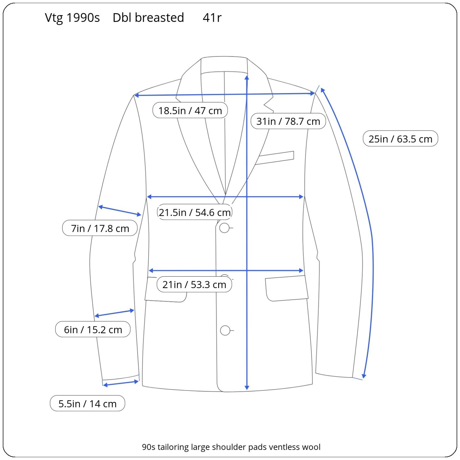 Size: 41r USA with 25-inch arm length and a jacket length of 31 inches. Pants: 35x29 For complete measurements, see photos #2 and #3 To see exactly how we measured, see the last series of photos. Extra fabric for adjustments: Waist: 2 inches Inseam: 2 inches Arms: 1 inch Condition: excellent condition. No holes, no snags, no smells, no stains. 1990s tailoring/ large shoulder pads-ventless-relaxed leg, pleated, merino wool, made in Italy Return policy: We offer free shipping and no returns. We can not afford to offer both in the highest return category on eBay. It becomes very expensive to mail out items for free for people to try on if they are not confident in checking the measurements in picture #2. If you prefer to have the ability to return the item and pay $12.95 shipping, please send us a message, and we can change the listing format to offer returns. The $12.95 shipping cost would break us out even in the case you needed to return the item. You must reach out before purchasing as a lot of our items are on consignment and we need to run the return option by the owner of the item for final approval. We ship the next business day after the payment is made.