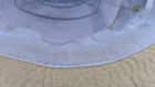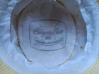 Great looking vintage yellow bucket hat with a geometric band. The inside says easy-to-roll, crushable & shape retaining. I found this to be true. After laundering, it came out great and retained its shape beautifully. There is very light staining on the inner band. Please see photos. The size is seven
