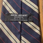 This Vintage Brooks Brothers Repp Silk Regimental Stripe Tie in classic black and white color combination exudes a preppy and sophisticated charm. Made of 100% silk and crafted in the United Kingdom, this tie is a stylish addition to any man's accessory collection. The regimental stripe pattern adds a touch of heritage and elegance, perfect for formal occasions or adding a pop of color to a smart-casual look. Vintage in nature, this tie is a timeless piece that captures the essence of classic British style.