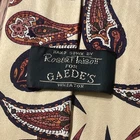 The product is a vintage Robert Talbott for Gaede's silk paisley tie, hand sewn in the USA. This classic designer necktie features a preppy multicolor paisley pattern on satin fabric, making it a stylish accessory for men. The tie's high-quality 100% silk material and intricate hand-sewn construction add a touch of sophistication to any outfit. Perfect for adding a unique and timeless touch to any professional or formal ensemble.