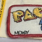 Vintage Embroidered Pac Man Iron On Patch Midway 1982 Unopened Joy Insignia Inc. Very good condition - Unopened package - Price tag remnants on packaging Iron On Embroidered Patch - Directions on back 4.25" X 2" White background, red edging, yellow lettering, blue and yellow characters Thank you for looking at this vintage listing from Magpie Revibe ! 78350501224