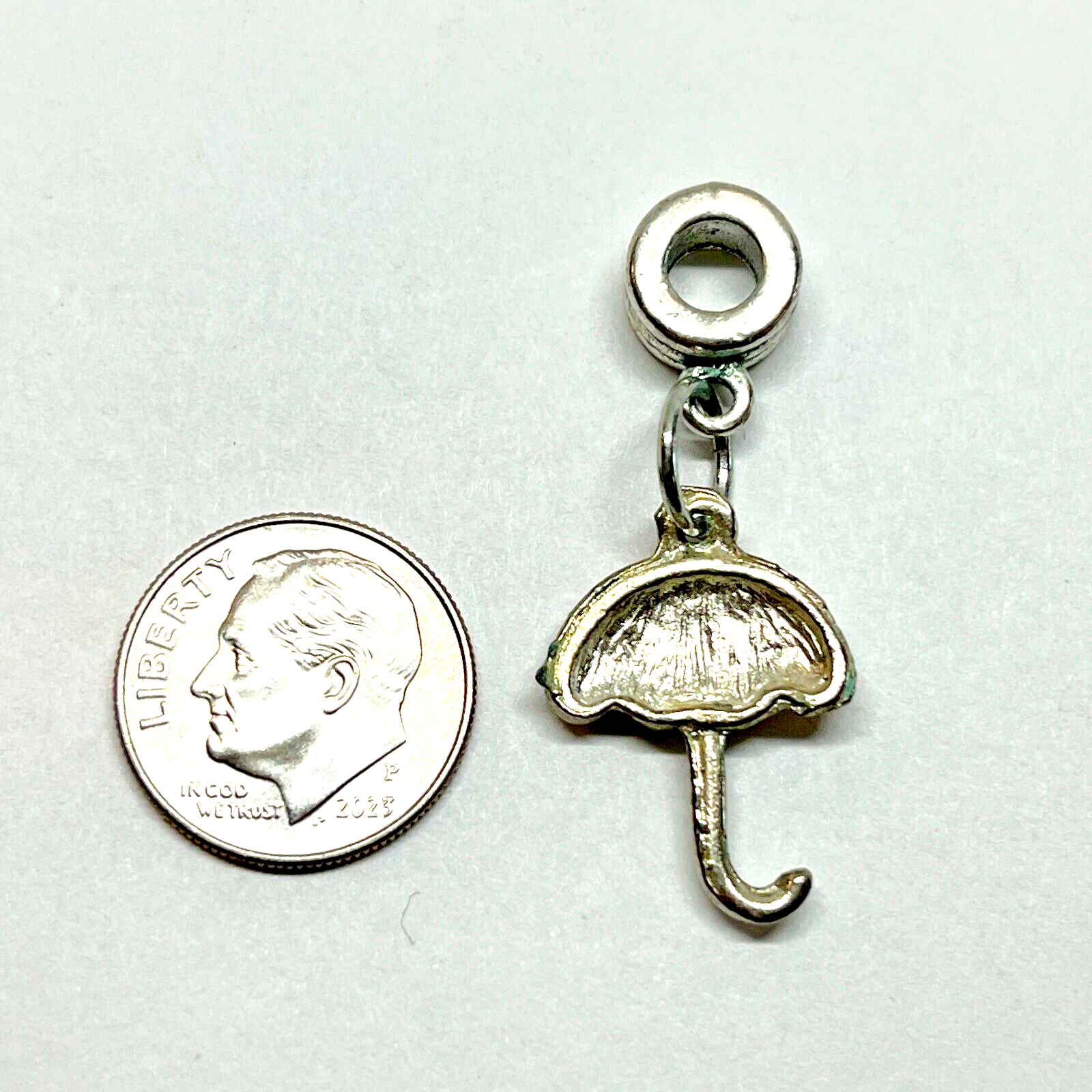 VINTAGE STRIPED UMBRELLA DANGLE CHARM Fits Pandora and European snake chain bracelets as well as thicker cords and necklace chains. CHARM DETAILS: Charm Metal: Silver Plated Finish Color: Multi-color Size: Compare photo with dime Style: Concave Available without bead attached upon request Snake bracelet not included SHIPPING: Shipping within the USA is free. Please refer to the estimated delivery date during checkout. Handling time is one business day.