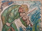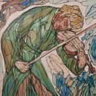 The Vintage ( Circa.1960s ) Framed Original Expressionist Portrait Watercolor Painting on Paper "Jewish Musician" , Signed By Artist Chaim Goldberg ( Polish / Israeli / American, 1917-2004 ) in Lower Left, and Illegibly Inscription in Lower Right. It Depicts A Yong Jewish Musician Playing A Violin Solo with Deep Emotion, Immersed in the Beautiful Melody, and Deep Nostalgia For His Hometown. This Charming Watercolor Painting with Brightness and Cheerful Colors that is Perfectly Demonstration of Chaim Goldberg's Superb Excellent Painting Style, which is Flowing and Lyrical, Vibrant in Bright Color, and the Figure in the Painting Always Seem to Be in Motion, Moving in Rhythm to the Violin Tone. The Painting in Good Condition Shows Minor Toning, Discoloration, and Mat Edge Looks Slight Wavy, Some Wear on the Frame Consistent with Age. About Artist: "Chaim Goldberg was a Polish born artist who lived from 1917 to 2004. Known for his Jewish-based works, Goldberg immigrated to Israel after World War Two, and in 1967 he moved to the United States where he resided in Boca Raton. Besides paintings, Goldberg also created sculptures and engravings, and most of his work fell under the category of modernism due to his experimentation with new shapes and mediums. Furthermore, Goldberg’s work has been exhibited all around the world in places such as the Metropolitan Museum of Art, the Museum of Modern Art, the National Gallery of Art, among many others." Title: "Jewish Musician" Artist: Chaim Goldberg ( Polish / Israeli / American, 1917-2004 ) Time Period: 1960s Medium: Watercolor on Paper Condition: Good Condition Frame Size: 34" By 27-1/2" Sight Size: 24-1/2" By 19-1/2" Available For Domestic Shipping and International Shipping. Thanks!