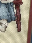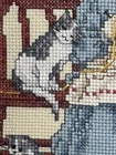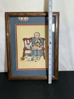 This vintage framed cross stitch art piece features a charming scene of a girl knitting with two cats. The intricate details of the embroidery make this piece a unique addition to any collection. Made in the USA, this piece is a testament to the skill and dedication of American craftsmen. The type of embroidery used is cross stitch, and the piece is finished and ready to display. The perfect addition to any home decor, this piece is sure to delight any lover of embroidery and vintage art.