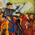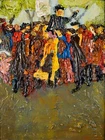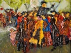 The Vintage ( Circa.1960s ) Framed Original Impressionist Oil Painting on Board "Hyde Park" , Signed By Artist Fred Albert ( American, 1933-2010 ) in Lower Left. It Depicts the Adults and Children Gathering Together on the Lawn of the Hyde Park, Singing and Dancing, Freely Expressing themselves and Enjoying A Happy Time. The Thick Impasto Heavy Brushwork Technique that Creates A Visually Stunning Texture. The Figures Have A Sense of Motion and Movement which Creates A Sense of Energy. The Rich Color Palette and Intense Tones Enhance the Cheerful and Lively Atmosphere Presented in the Scene, As Well As the Passionate Emotions of the Crowd's Interaction. The Painting Shows Toning, Craquelure, and Some Wear on the Frame Consistent with Age, In Good Condition. Title: "Hyde Park" Artist: Fred Albert ( American, 1933-2010 ) Time Period: 1960s Medium: Oil on Board Condition: Good Condition Frame Size: 25-1/2" By 21-1/2" Sight Size: 17-3/4" By 13-3/4" Available For Domestic Shipping and International Shipping. Thanks!