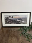 Atmospheric vintage panoramic landscape print depicting a winding river valley at dusk or dawn, surrounded by trees and gentle countryside hills. The scene features soft, natural tones and painterly detail, evoking a peaceful, almost romantic view of rural life. Elegantly framed in a slim black and gold frame with a double mount, this piece works well in both traditional and rustic interior styles. Type: Framed vintage landscape print Subject: River valley and countryside with trees Style: Panoramic / traditional / romantic landscape Frame Size: Width – 59cm | Height – 31cm Condition: Good vintage condition overall. Some light age-related marks on the mount and minor surface wear to the frame. Print remains clear and attractive – see photos. Ideal for hallways, studies, or any room in need of calm, nature-inspired decor. We take great care to provide accurate descriptions, and we encourage you to thoroughly review the accompanying photos for a comprehensive understanding of the item's details. If you have any questions or need additional information, please don't hesitate to reach out to us. All items are wrapped securely and sent via a tracked delivery service.