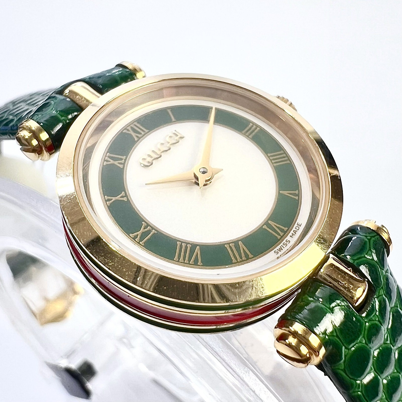 Absolutely love this stunning GUCCI watch! The gold and green accents give it such a luxurious, elegant vibe, and the 21.5mm size is perfect for a delicate wrist. The white dial is crisp and easy to read, making it both stylish and functional. Shipping from Japan was smooth, and the seller provided clear info about import duties—no surprises! Feels like a high-end piece without the brand-new price tag. Highly recommend!