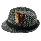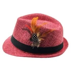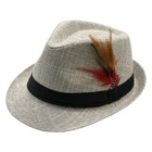 Plain Color Fedora Feather, Summer Fashion Condition: Brand New, Unworn Made of acrylic Size: 7 1/4 ( 58cm ) Very good quality, stylish and fashion. Ultra Light Fedora Style Band wraps around with a feather on the side One size fits most Stiff Brim