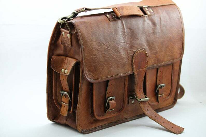 Men's Leather Messenger Satchel Shoulder Briefcase Business Bag - Leather Bags Best Product in Leather Bags Descriptions: 100% genuine goat leather messenger bag with a durable inner lining made of canvas. Designed to carry 15" laptops, tab, documents or other personal belongings, etc. A genuine hand made product using Natural leather. Natural oils and light have been used to obtain the style of the leather - chemical free! This bag features a wonderful unique and vintage look, designed to carry mini laptops, tab, documents, personal belongings etc. Perfect for the office, school or as a gift! Specifications: Made from 100% genuine, strong, lightweight, durable goat leather, tanned without the use of chemicals Adjustable shoulder strap, half flap bag with strap lock & small front pocket. big inner compartment for carrying files, mini laptop's, tab's etc. 1 zipper compartments for important documents/paperwork etc. Inner canvas lining Vintage leather wash Leather softens and darkens with use Handmade in India by experienced craftspeople RETURN POLICY Please provide your telephone number as well, so that the post office can contact you when your item arrives, or the item will be sent back to us. We will not be able to resend the item in that case so please make sure to provide your contact number. • In case of return of the goods, buyer has to borne the shipping charges. • Customs duties and other duties levies in destination country are responsibility of the customer. • We will exchange the item if returned to us within 14 days of original packing. • The item should not be used. • No alterations Must be Done to Item. Otherwise We won't take it Back • Buyer Must Inform within Two days after Getting the product about any Issues with the Item. TERMS & CONDITIONS Customers are require to provide full & accurate information at the time of order. No warranty. Dry cleaning only. We use standard shipping carriers for national & international shipping. Accessories & Stitching Pieces shown in the image are just for photography purpose. There may be color variation due to difference in resolution of the photo & the actual color. Please clarify all your doubts before buying. In case the item is out of stock your entire amount will be refunded via the same way the payment was made. Offer price is for per piece. About Us We manufacture ethically designed leather bags of great quality. The most important thing, these bags are not factory made, all of our bags are locally handcrafted in countries. We offers customized designing and wholesale prices for bulk order. We welcomes you to come and visit our manufacturing unit. For more details, please write to us. Feedback • Please do not leave a negative feedback as a way to communicate. Any rating given to a seller can neither be changed nor modified. So better communicate for faster resolution to any disputes. • If you have any concerns regarding your purchase, please contact us via phone or mail, we assure you that a satisfactory resolution will be reached. • Please help us maintain a 5 Star DSR rating in all 4 rating categories, if you feel otherwise, please let us know how we can score a perfect rating from you before you rate us.
