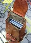 Features Green canvas fabric Internal 1 big compartment 4 small pockets Size:- 16 x 8 x 8" inch ADJUSTABLE BACK SHOULDER STRIP (See the picture for more detail) Strong, light-weight goat leather, tanned without the use of chemicals Leather softens and darkens with use Color and texture of the leather varies Natural real leather smell, just like a luxury car or lounge suite Solid brass buckles and fixtures - will last for years Has a wonderful natural look, and feel Each bag is uniquely individual due to slight color and marking variations on natural leather Brand New Handmade Leather Bag without tag