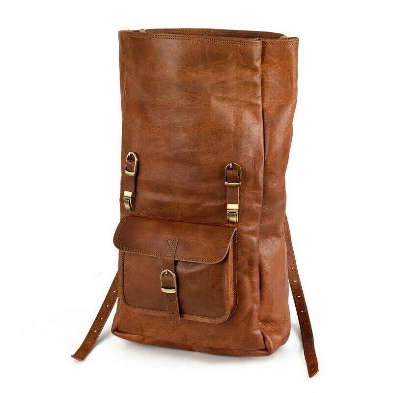 Description 100% authentic, naturally tanned GOAT leather Extremely soft in touch Absolute handmade Retro look Leather Backpack with durable stitching and robust canvas lining Size (In inches) - 14"(L), 17"(Rolled) -(H)- 22"(Open), 4(W) 1 front pocket Inside - 1 compartments and 2 pockets Interiors adequately waxed with resilient canvas lining Adequately long and adjustable shoulder straps Hardware made of authentic iron.. Payment Policy We Accept Payments Through Paypal Shipping Combine shipping (Heavy discounts) available Same day dispatch (99.9%) Tracking information for shipping are available 3 days’ Express delivery available on nominal additional charges (On request) Shipping Partners - DHL, FedEx, UPS etc and like other International Courier Service providers only Shipment/delivery sometimes might get affected by holidays, public events and/or some other uncertain events. We can’t promise the precise delivery time. Please understand that sometimes the customs at the arriving destination are not under our control. For buyers looking for outwardly shipping time- please provide us your contact number. We guarantee to keep it confidential. Return Policy Returns are duly accepted Please write to us before returning the article In order to return an item, buyer must contact us within 14 days of receiving it On buyer's choice, we can refund or even replace the item too. Return shipping charges will be paid by the buyer Item must be returned in its original condition For any clarification on ‘Return Policy’, feel free to write to us. Please Note Every leather item has distinctive color tone, which may deviate a little from given pictures and also differ from item to item. Pure leather may have a few scars/cuts/marks on it. Authentic leather may stink a little when it is brand new, but odor will go away with using frequently. To get rid of the smell, put it in fresh air for a while. There might be some local custom charges which are unfamiliar to us, and are the liability of the client of the destination country. Please guide us on custom procedures followed in your native country, and we will be more than pleased to pursue your guidelines. Brazil - Please make available CPF details and contact numbers, as it is a MUST. About us We are manufacturer and wholesaler of leather products and specialize in Office Briefcases, Office Bags, College/School bags, Travel Bags, Handbags, Purses, Wallets, leather journals and diaries, and many more. We use high quality natural leather of Goats and Buffaloes. We also offer customized designing as per client’s requirement. We even provide wholesale prices for bulk orders. For more details, please click on "ASK A SELLER QUESTION " THIS IS A COMFORTABLE BAG AND WE KNOW YOU WILL LOVE IT Check Out Other Amazing Leather Products on Our Store!! If anything unanswered, please do write to us.
