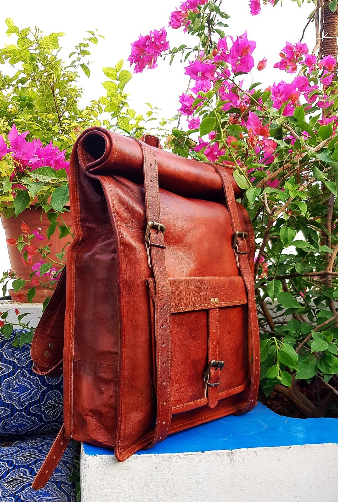 Description 100% authentic, naturally tanned GOAT leather Extremely soft in touch Absolute handmade Retro look Leather Backpack with durable stitching and robust canvas lining Size (In inches) - 14"(L), 17"(Rolled) -(H)- 22"(Open), 4(W) 1 front pocket Inside - 1 compartments and 2 pockets Interiors adequately waxed with resilient canvas lining Adequately long and adjustable shoulder straps Hardware made of authentic iron.. Payment Policy We Accept Payments Through Paypal Shipping Combine shipping (Heavy discounts) available Same day dispatch (99.9%) Tracking information for shipping are available 3 days’ Express delivery available on nominal additional charges (On request) Shipping Partners - DHL, FedEx, UPS etc and like other International Courier Service providers only Shipment/delivery sometimes might get affected by holidays, public events and/or some other uncertain events. We can’t promise the precise delivery time. Please understand that sometimes the customs at the arriving destination are not under our control. For buyers looking for outwardly shipping time- please provide us your contact number. We guarantee to keep it confidential. Return Policy Returns are duly accepted Please write to us before returning the article In order to return an item, buyer must contact us within 14 days of receiving it On buyer's choice, we can refund or even replace the item too. Return shipping charges will be paid by the buyer Item must be returned in its original condition For any clarification on ‘Return Policy’, feel free to write to us. Please Note Every leather item has distinctive color tone, which may deviate a little from given pictures and also differ from item to item. Pure leather may have a few scars/cuts/marks on it. Authentic leather may stink a little when it is brand new, but odor will go away with using frequently. To get rid of the smell, put it in fresh air for a while. There might be some local custom charges which are unfamiliar to us, and are the liability of the client of the destination country. Please guide us on custom procedures followed in your native country, and we will be more than pleased to pursue your guidelines. Brazil - Please make available CPF details and contact numbers, as it is a MUST. About us We are manufacturer and wholesaler of leather products and specialize in Office Briefcases, Office Bags, College/School bags, Travel Bags, Handbags, Purses, Wallets, leather journals and diaries, and many more. We use high quality natural leather of Goats and Buffaloes. We also offer customized designing as per client’s requirement. We even provide wholesale prices for bulk orders. For more details, please click on "ASK A SELLER QUESTION " THIS IS A COMFORTABLE BAG AND WE KNOW YOU WILL LOVE IT Check Out Other Amazing Leather Products on Our Store!! If anything unanswered, please do write to us.