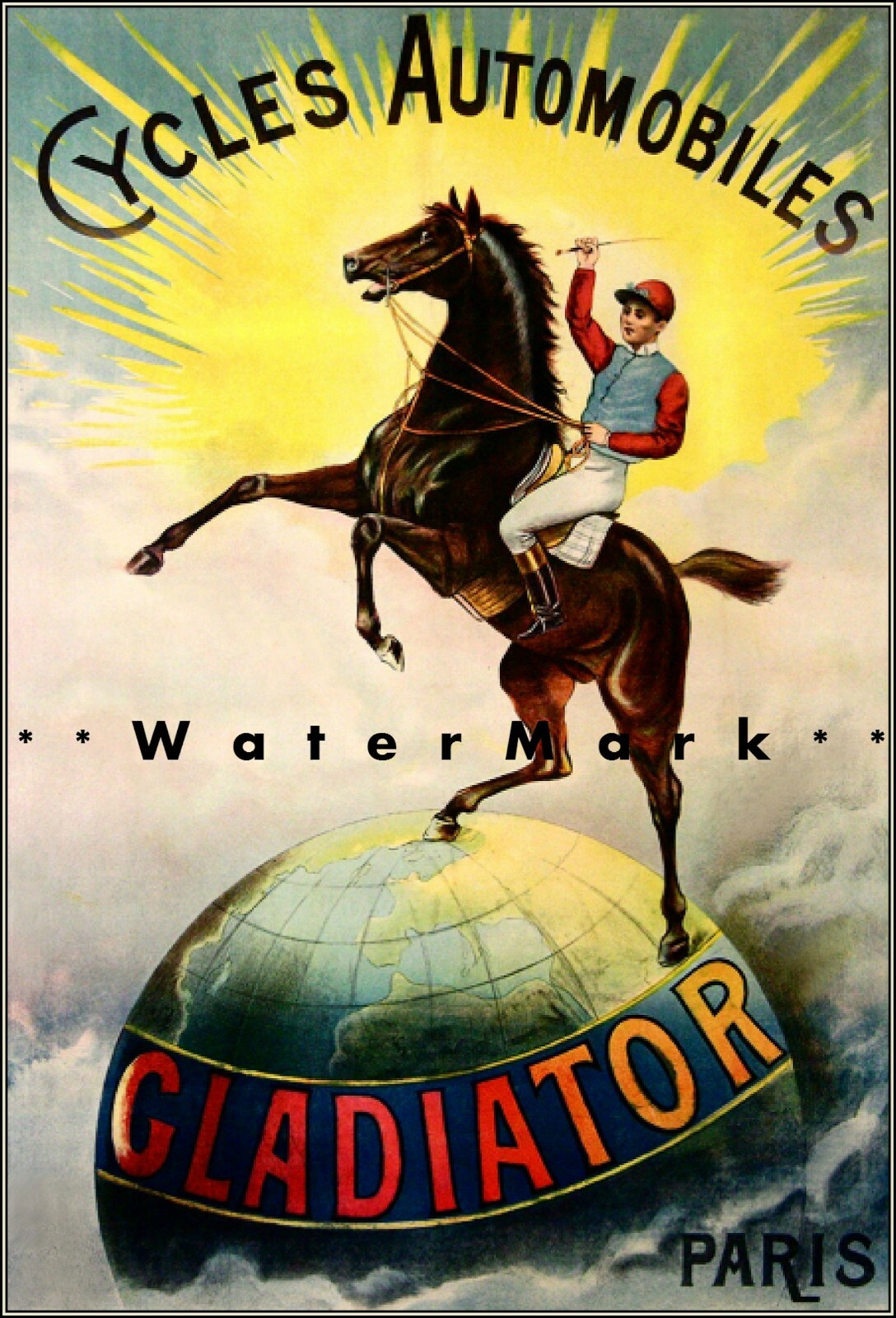 Gladiator Bicycles 1900 Cycles Automobiles French Bicycle Car Advertisement Vintage Poster Print Retro Style Restored Art We offer Free US Postage or Reduced Postage for Canada & Worldwide. No charges for additional prints worldwide. ***These are not framed or stretched or mounted NOTE:**Delivery dates shown are only "Suggested" Order Early To Avoid Post Delay Dramas **Read Please: The print looks best with a nice mat (passe - partout or passepartout ) and frame. These prints are the exact proportion as the original and will not be stretched to fit the paper or canvas...this would cause a distorted print The image will be the exact aspect ratio as per the original poster, so there might be more white on the top and bottom, or side to side. Options available..use the drop-down menu * Watermark will not be on your image. *Cloth Canvas an artist canvas used also in museums and art galleries *Photo Gloss Paper is a high-quality Professional Photo paper *Matte Photo Paper is a great solution if you do not want a Gloss, this paper is great with colors *Luster Photo Paper this photo paper is neither glossy or matt. Glossy paper has a smooth texture, luster paper is slightly textured. This option is a good choice for something in between Metallic, Photo Gloss and Matte *Metallic Pearlescent Photo Paper is a very high-quality paper with a Pearlescent sheen, a glossy finish, and unique metallic appearance, these prints have extra visual interest and depth. This paper uses a combination of film laminate layers that produce striking, dimensional, lasting images on an ultra-bright background. The effect is sometimes described as "chrome on paper." This is NOT a metal plaque, it is a photo paper This poster print will be shipped in a sturdy container. We will ship usually within 24 business hours of payment, except for weekends or US Holidays If there is a question, please do contact me The delivery date given on the listing page page is not a guarantee by the post All is done to send you the best quality poster image. Don't forget to check out the Sales. There is a great Buy 3 Get 1 Free Offer!! Shipped with no extra postage..Worldwide! There are a variety of reasons why the images on your monitors don't match each other. The simplest is that each monitor is different; even monitors with exactly the same model won't have colors that match up perfectly.