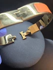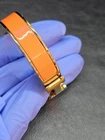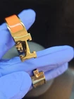 Buy and get free jewelry!! Used Gold Tone Hermes Paris Signed Clic H Orange Bracelet As Is!!!!!!!!!, this is a used Hermes Paris Bracelet,***** it does not have a Setial number ****is missing the other side of the Enamel color strip, *****I'M SELLING IT AS IS!!!!! SO UF YOU BUY IT, YOU KNOW THAT IS MISSING WHAT UT HAS BEEN DESCRIBED!!!*********** PLEASE SEE PICTURES FOR CONDITION AND SIZE, free fast shipping!!! Signature will be required upon delivery.