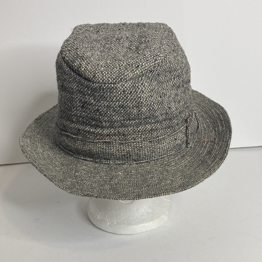 This vintage Millars Cliften Connemara hat is in good condition! A classic fedora style hat fit for todays modern vintage lover. Matching band with fabric buckle. 100% wool in a tweed style fabric Gray black nailhead pattern Made in Ireland! No size. Measures approx 21" in circumference which suits a mens small, possibly medium See pics for measurements. Condition note: needs a re shaping.