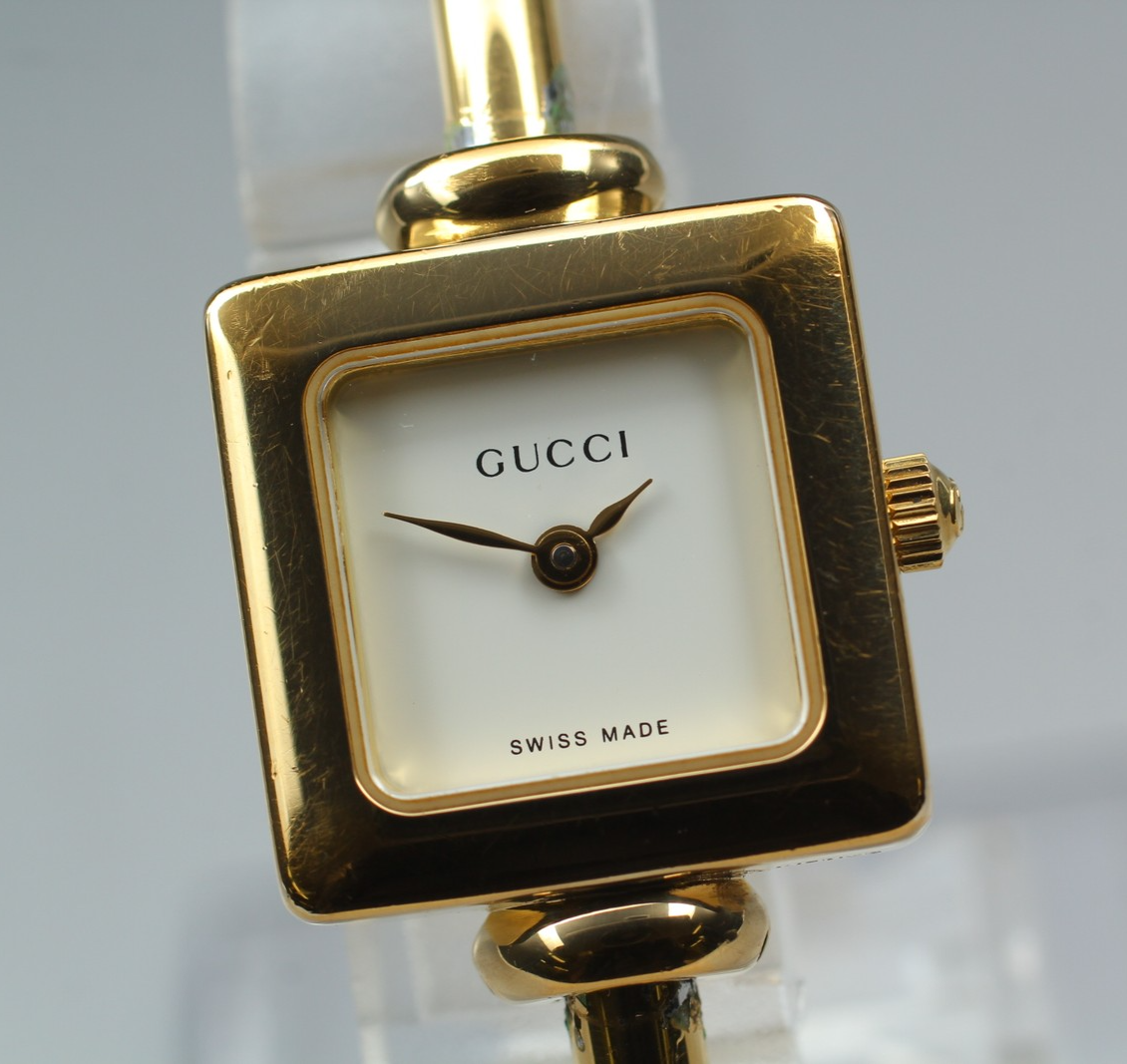[Exc+5 Box/Paper] Vintage Gucci 1900L White Dial Gold Square Quartz Women Watch #229 Description Total Condition; EXCELLENT+++++ TOP MINT Pre-owned, Almost new item MINT Pre-owned, Like new NEAR MINT Pre-owned, almost no signs of use EXCELLENT+++++ Pre-owned, minimal signs of use EXECELLENT Pre-owned, heavy signs of use VERY GOOD Poor appearance Case : Near MINT Band : Exc+++++ Windshield : Near MINT Serial Number; 0021103 Appearance; Appearance is beautiful. tiny scuffs from normal use. It shows signs of use. *Please check photos. Functional; It works properly. Bundled Items; Box Paper All you can see on the picture will be included in a set of a package. Above condition is based on my own opinion. Please check the photo carefully. Please feel free to contact me for any questions! Thank you. Shipping I send a product by FedEx International Priority . I attach the tracking number. Please bid it without worrying. Shipping is available from Monday to Friday. Weekends are not available because office is closed. Storage and Packing Storage Immediately after shooting, it is placed in a closed container with desiccant and stored for 24 hours and 365 days in a temperature and humidity controlled warehouse. All products, including cameras and lenses, are stored in a temperature- and humidity-controlled warehouse 24 hours a day, 365 days a year. Packing By weight and shape of each product, I use 13 kind of cushioning materials and pursue safety and weight reduction. Returns Unconditional Return Policy Customer service and satisfaction are very important to us. I have an unconditional return policy if notified within 30 days of the receipt of the item. All returned items must be the original condition. All return requests must be made within 30 days of the receipt of the item. Please contact me first for return before you ship it back to me. The postage of the returned goods is a seller burden. International Buyers Please Note: Import duties, taxes, and charges are not included in the item price or shipping cost. These charges are the buyer's responsibility. Please check with your country's customs office to determine what these additional costs will be prior to bidding or buying.