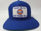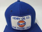 Has some wear on the brim, front, and underneath the brim as seen in photos. Vintage Gulf Henry Oil Co The Tough Oils New Era Mesh Trucker Snapback Hat Cap EACH ADDITIONAL HAT PURCHASED IS ONLY $1 ADDED SHIPPING!