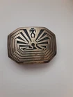 This is a Vintage Navajo/Hopi Sterling Silver Belt Buckle. The design is of a man in a maze. The Buckle weighs 31.4grams and is marked: Sterling. The Buckle is 2"x 1 1/2". THANKS FOR LOOKING!