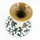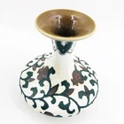 Vintage Hand Painted Vase Studio Pottery Floral Design 6.5" Tall Green Brown