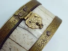 The lid is made well and works well. The product has signs of use and wear. Look carefully, inside the dial there is gold dust sprinkled! Size: 80 * 55 * 43 mm. Weight 114 grams. See the details in the photo. Thank you!