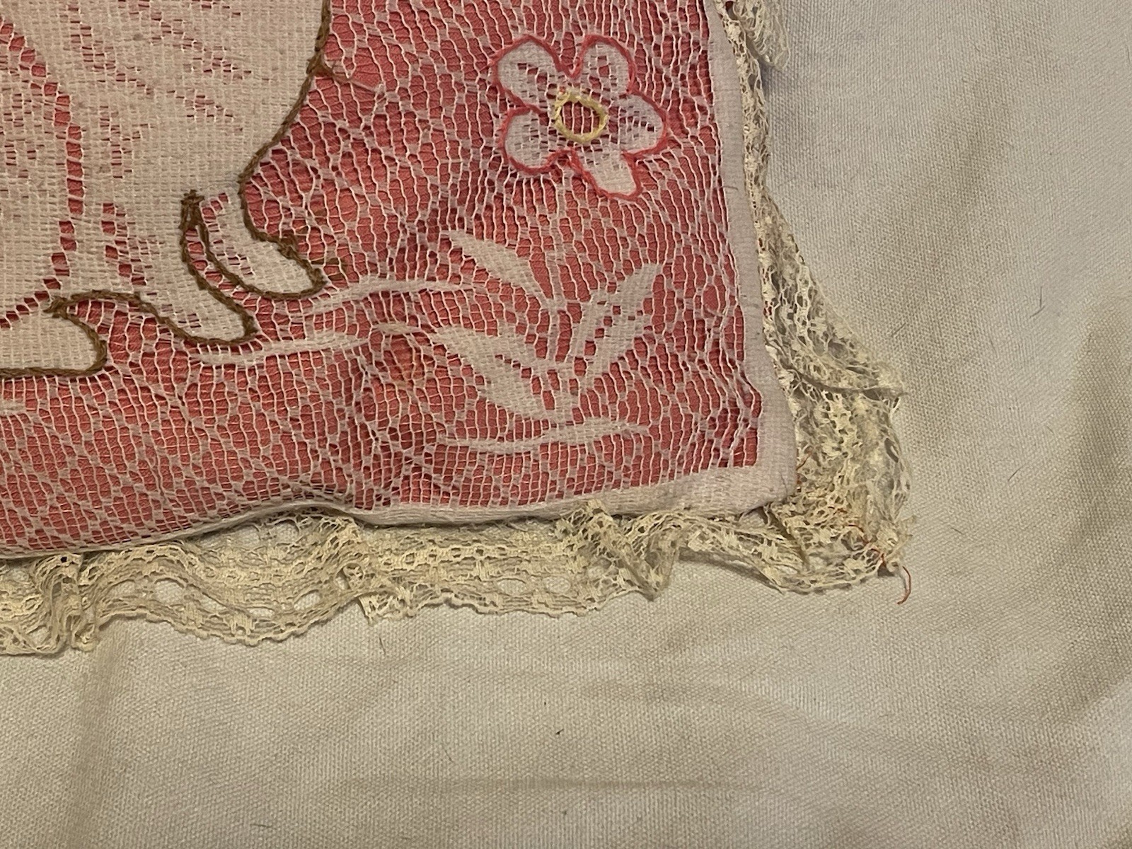 Vintage Handmade Pink & White Easter Rabbit Throw Pillow with Lace: This is an estate sale find and may contain a slight smoke smell. Make sure to refer to all photos as they are part of the description. Item is in great condition and does not have any stains or tears. Pillow measures roughly 11" x 11" (not counting the lace). Please feel free to message me if you have any questions. $49.99 No international shipping please.
