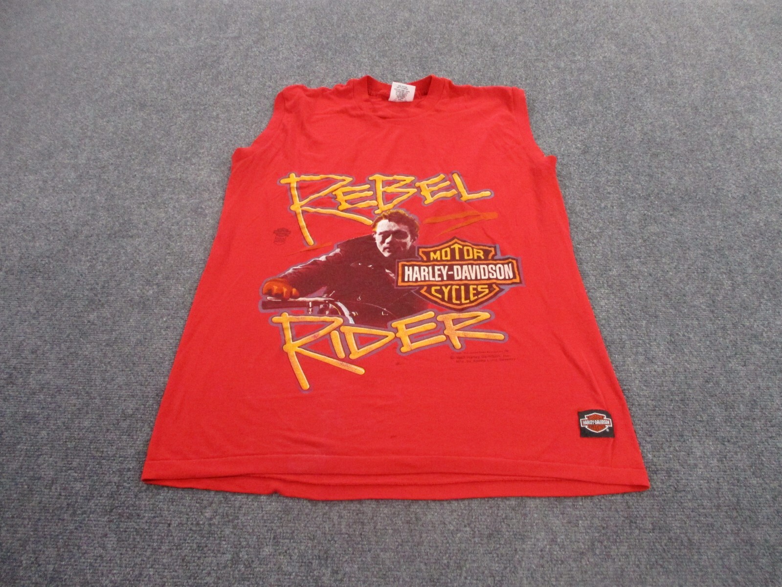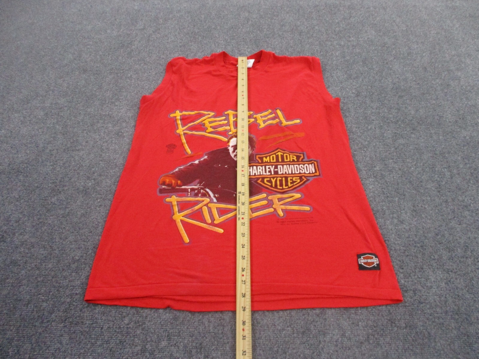 For sale is a used Harley Davidson Shirt Measurements: Please see above photos for all measurements. Compare to your favorite garments for best fit. Stained on front and back. I ship items out EVERY DAY so EXPECT a QUICK delivery!