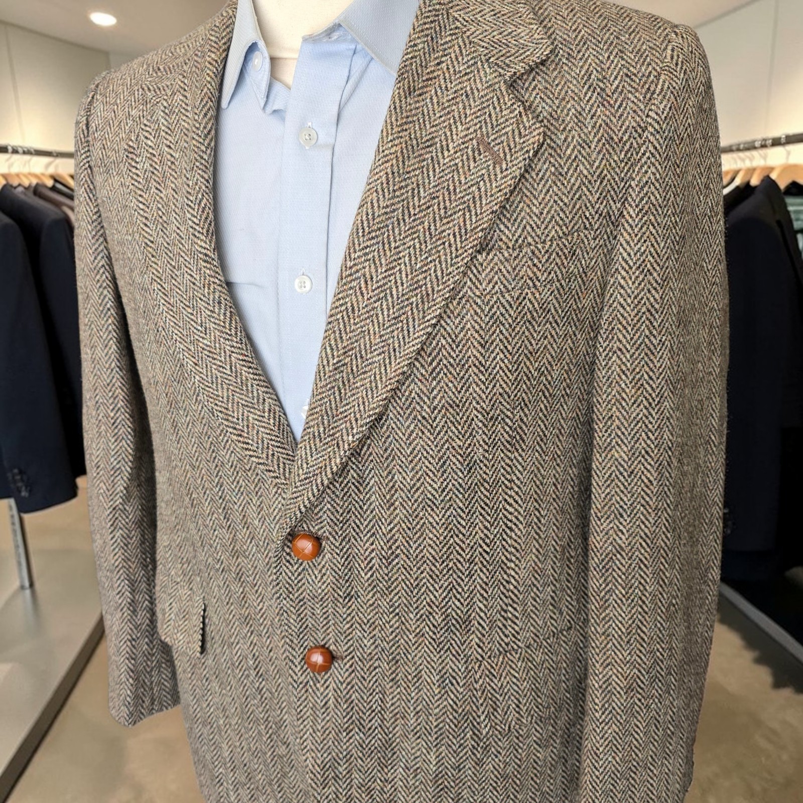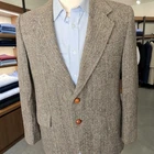 Size: 40S **with 23-inch arm length** and a jacket length of 28.5 inches. For complete measurements, see photo #2 To see exactly how we measured, see the last series of photos. Color and fabric: brown harris tweed herringbone Condition: grwat vintage condition. No holes, no snags, no stains, moth ball smell. Vintage 70s made in USA, light shoulder pads, single vent Return policy: We offer free shipping and no returns. We can not afford to offer both in the highest return category on eBay. It becomes very expensive to mail out items for free for people to try on if they are not confident in checking the measurements in picture #2. If you prefer to have the ability to return the item and pay $12.95 shipping, please send us a message, and we can change the listing format to offer returns. The $12.95 shipping cost would break us out even in the case you needed to return the item. You must contact us before purchasing as some of our items are on consignment and we will need to get the owners approval before proceeding. We ship the next business day after the payment is made. A discounted, expedited shipping option is available at checkout. If you need help figuring out how to buy a blazer or suit on ebay that actually fits you properly. There are some fantastic videos on You tub