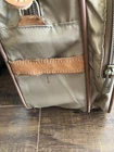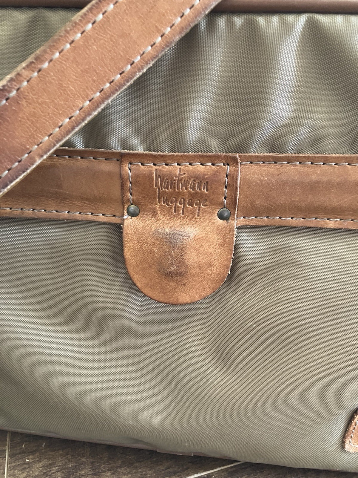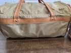 Condition Pre-owned – good vintage condition with normal wear from use (see details below). ⸻ Description Classic vintage Hartmann Luggage two-piece set featuring durable tan ballistic-style nylon with rich saddle brown leather trim and brass hardware. Timeless, understated travel aesthetic that Hartmann is known for. Includes: 1. Duffle Bag • Approx. 20” L x 12” H x 12” D • Dual leather carry handles • Top zip closure • Structured base with brass feet • Leather trim and reinforced corners 2. Garment / Travel Bag • Approx. 18” L x 12” H x 8” D • Dual top handles • Adjustable/removable leather shoulder strap • Multiple zip compartments • Brass hardware and leather accents Features • Iconic Hartmann leather logo patch • Durable tan nylon exterior • Saddle leather trim with beautiful patina • Brass hardware throughout • Structured frames with protective bottom studs Condition Notes • General surface wear consistent with age and use • Light scuffs and marks on nylon • Leather shows natural patina and some wear spots • Shoulder strap has visible wear • Interior clean overall • All zippers functional This is a quality vintage travel set with strong structure and classic styling — perfect for weekend trips, display, or collectors of heritage travel brands.