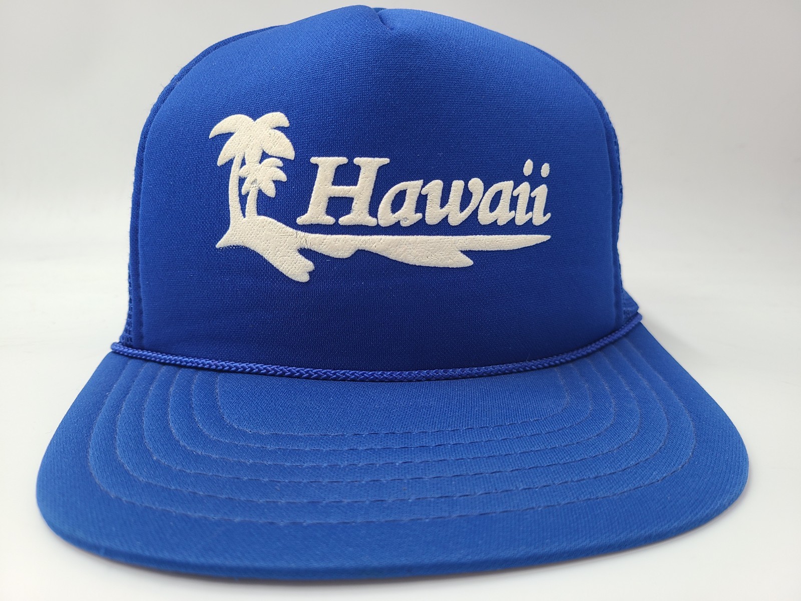 The tag says one size fits all, but it seems best suited for smaller sized heads. Vintage Hawaii Palm Trees Mesh Trucker Snapback (Fits Small) Hat Cap Blue White. EACH ADDITIONAL HAT PURCHASED IS ONLY $1 ADDED SHIPPING!