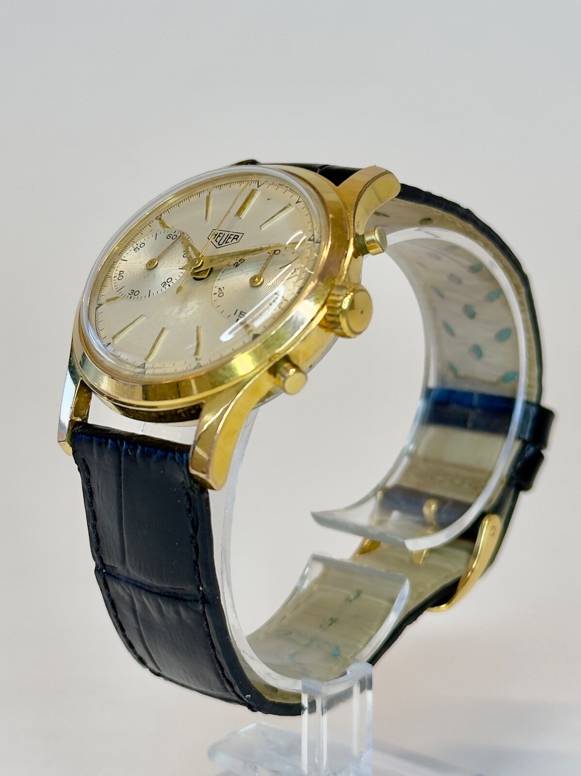 This Heuer Chronograph Pre-Carrera "Big Eyes" is a true collector's dream—a piece of racing history with Ayrton Senna's legacy. The Valjoux 23 movement delivers precision, while the gold-plated case and leather strap exude vintage charm. A stunning blend of heritage and craftsmanship that stands the test of time.