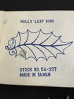 This Vintage Holland Mold Ceramic Green Holly Leaf Candy Dish Bowl is a charming addition to your Christmas decor. Made of ceramic with a beautiful green color, this handmade dish was manufactured in Japan in the 1970s. The holly leaf design adds a touch of nostalgia to your holiday celebrations, making it a unique and festive piece for your kitchen or dining table. Perfect for storing candies or potpourri, this vintage dish is a wonderful way to bring a touch of Christmas cheer to your home. No chips or cracks. In original box.