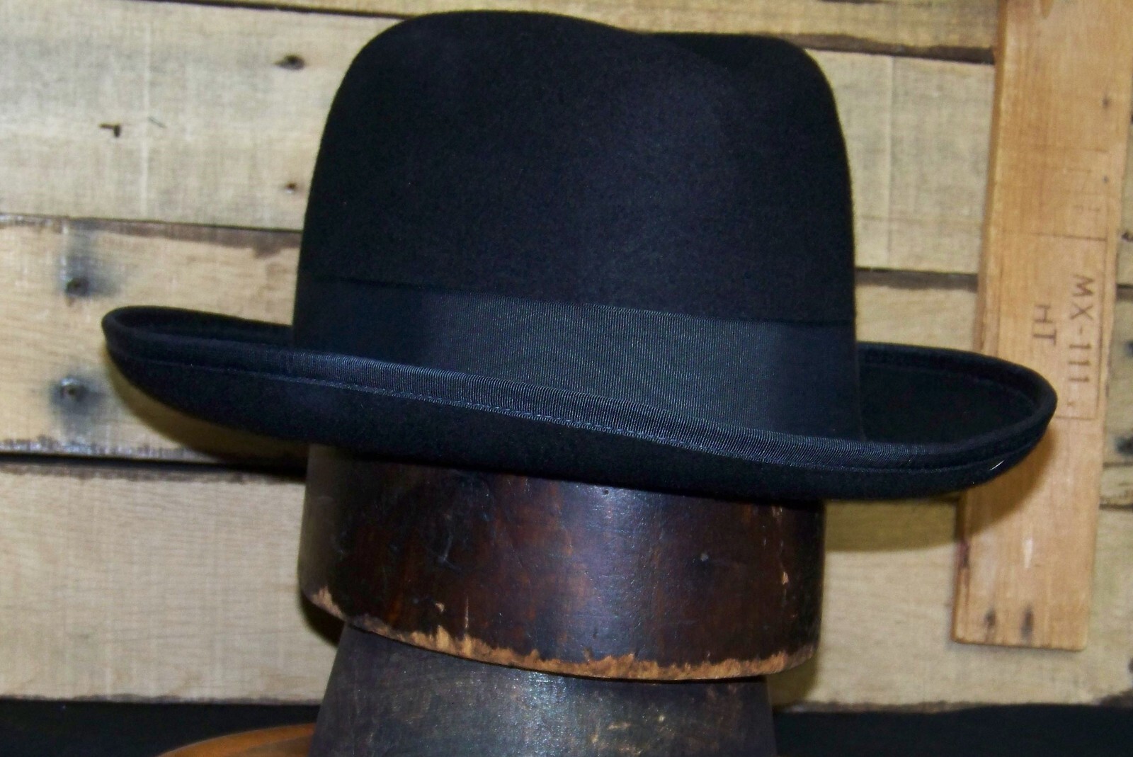 Very Nice Hat's in the Belfry Homburg Size med. Color black Excellent condition 95% perfect 5 in. crown 2 1/2 in. bound brim 1 1/2 in. grosgrain band Great Hat Great Price